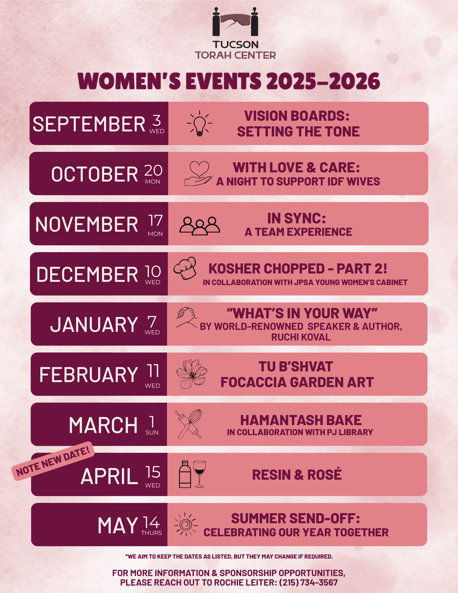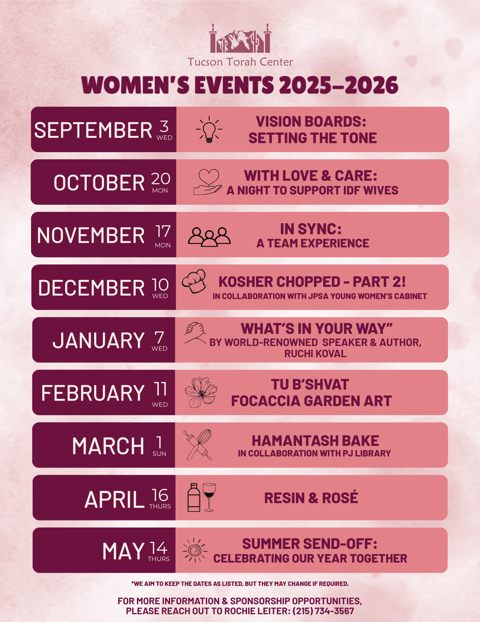 Including baby namings, bar/bat mitzvahs (and lessons), weddings, family celebrations, and other life-cycle events.